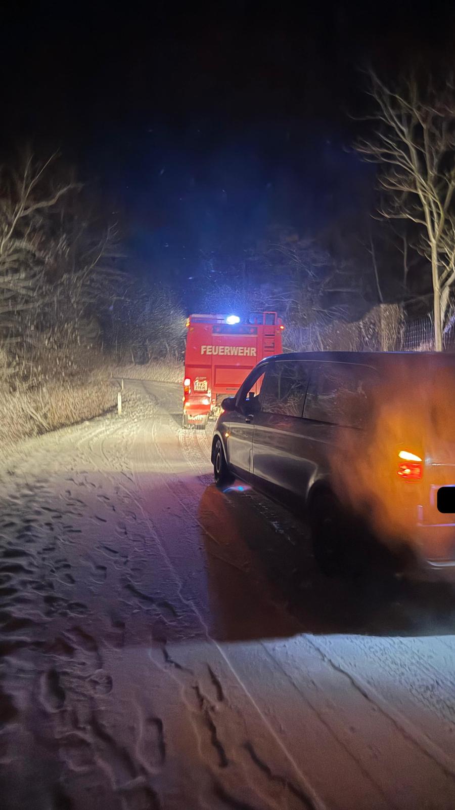 Aufgrund des anhaltenden Schneefalls und der glatten Fahrbahn kam ein PKW in Fahrtrichtung Immendorf von der Straße ab.